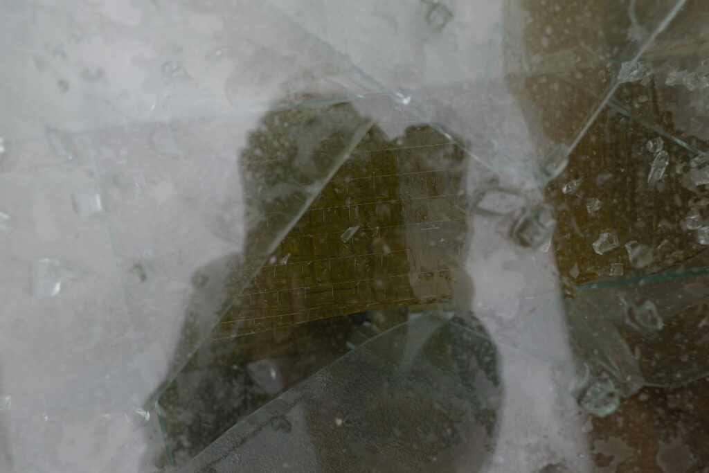 No need to clean the area we will do all this on site. It is recommend that you mitigate the area so other people will not get injured but no need to pull the glass out the window or door.